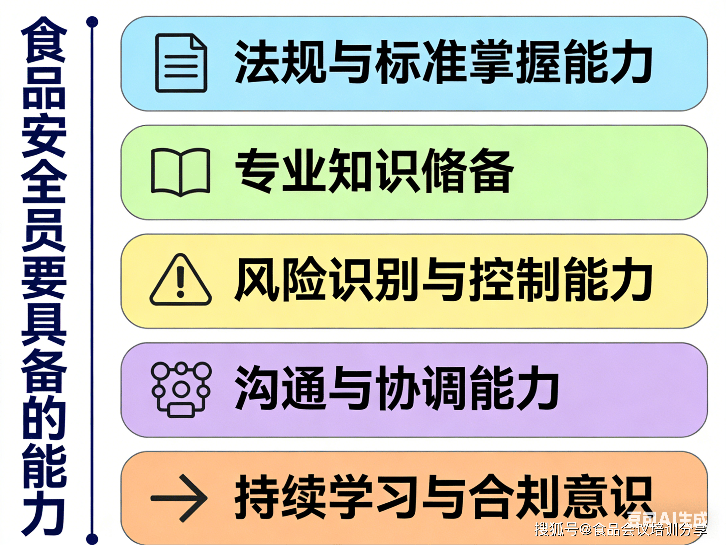 控制食物微生物学(如致病菌污染风险、菌落总数节制)、食物化学(如沉金属、添加剂、兽药残留等化学风险)、食物工艺学(如热加工、冷藏、包拆等环节的平安节制点)等焦点学问,能识别分歧食物品类(如生鲜、罐头、烘焙)的特有风险。